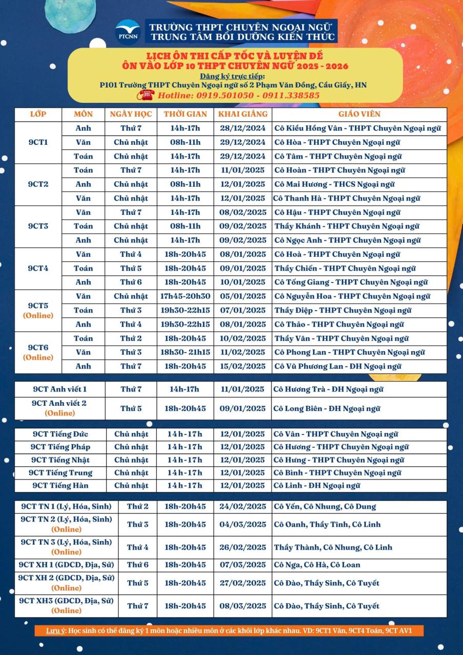 🏫 Địa chỉ: Phòng 101 trường THPT Chuyên Ngoại ngữ – Số 2 Phạm Văn Đồng – Cầu Giấy – Hà Nội