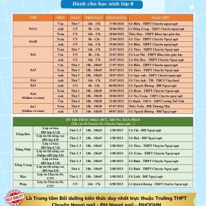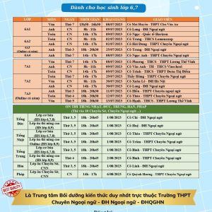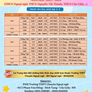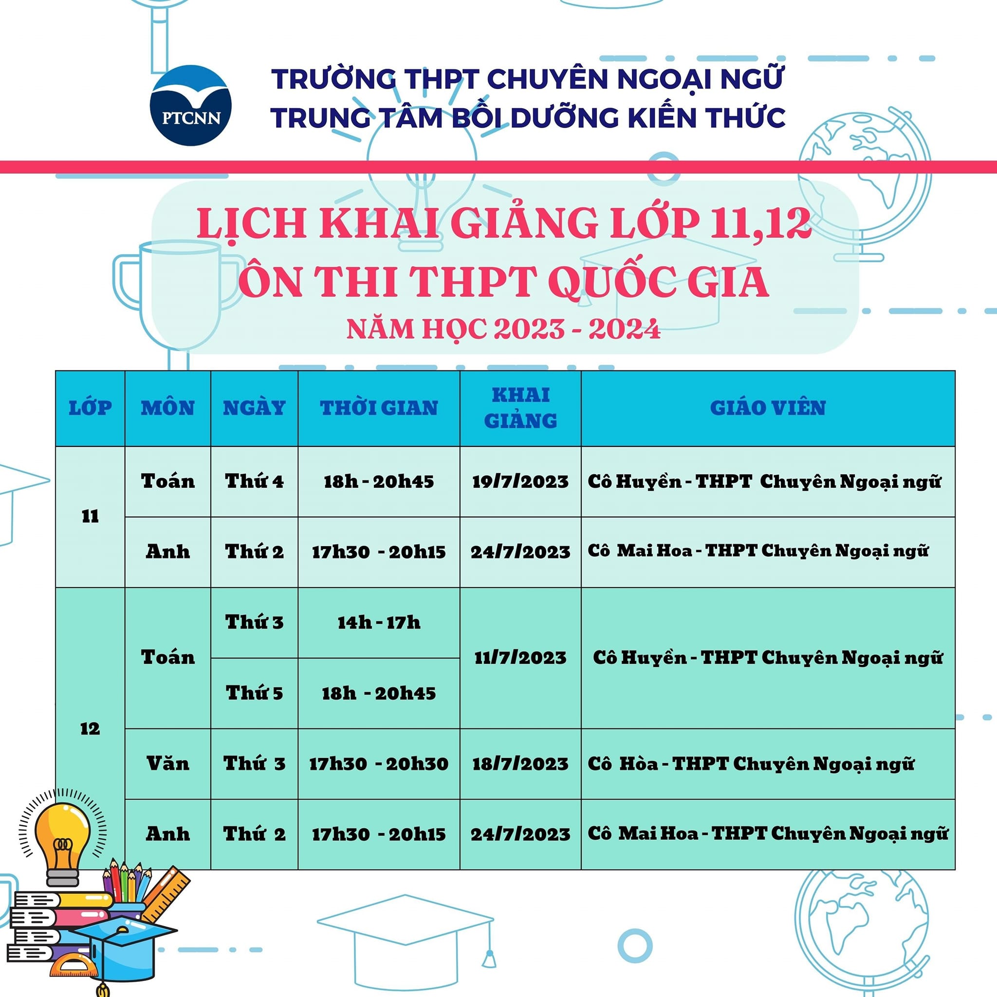 Lịch Khai Giảng Lớp ông thi THCS THPT chất lượng cao năm 2023-2024