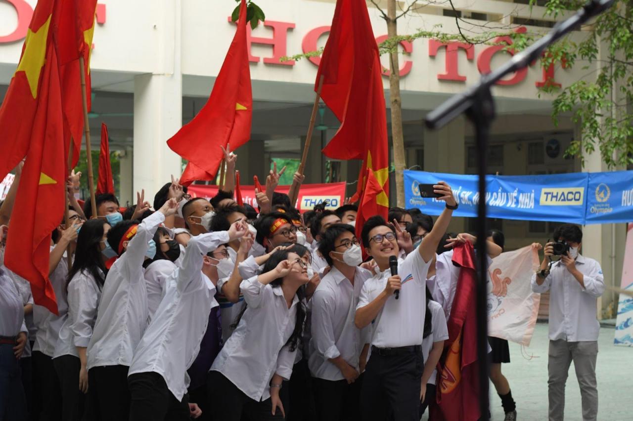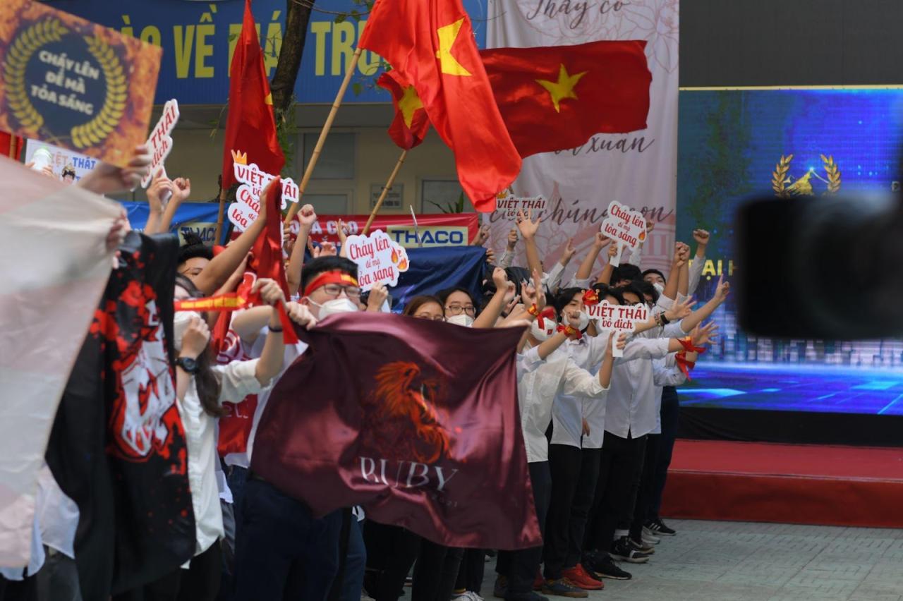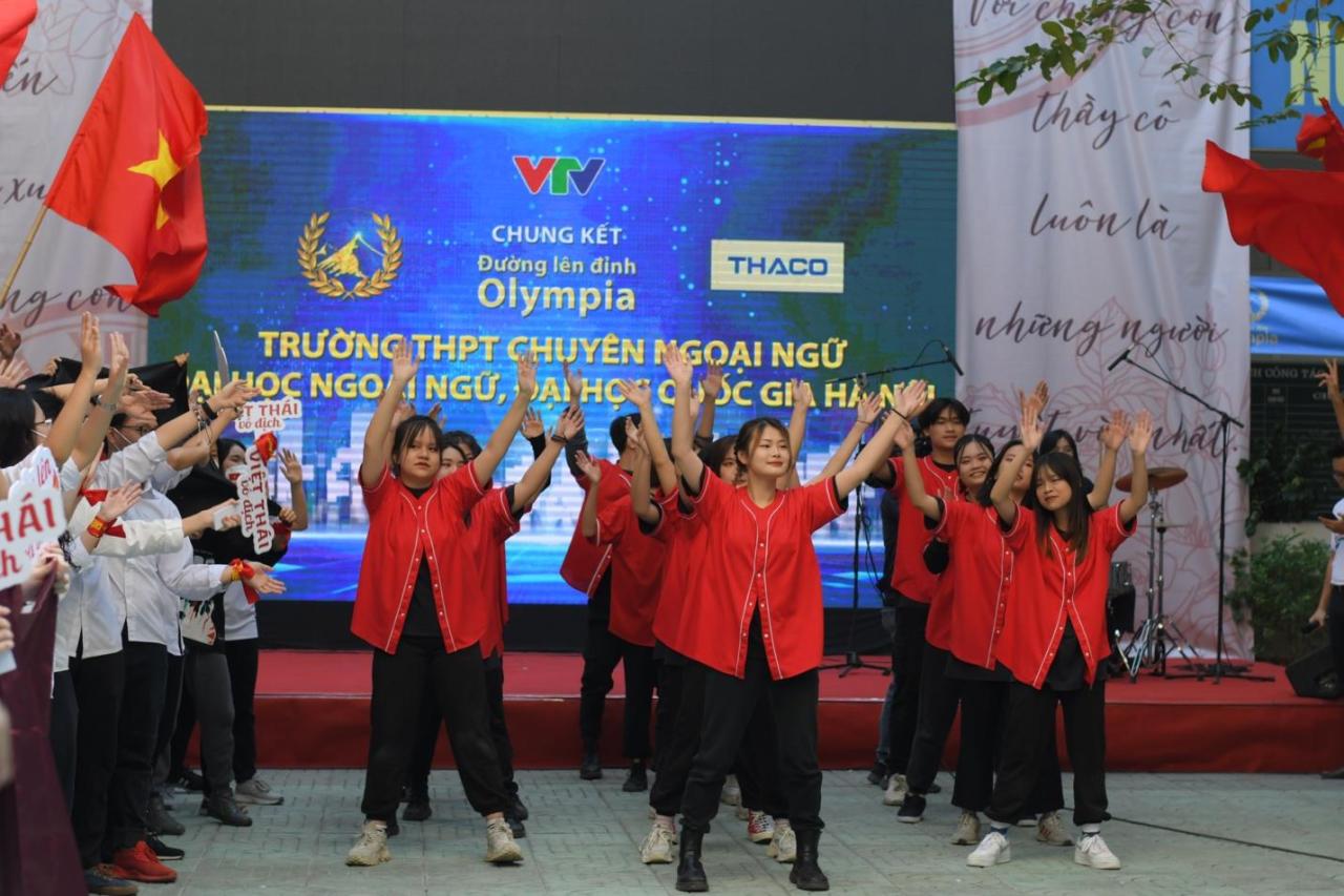 2. Chuyên Ngoại ngữ chẳng biết từ khi nào cũng đã cùng Việt Thái ôm “mộng Olympia”: mới sớm tinh mơ, băng rôn và những nụ cười đã bừng sáng rực rỡ khắp sân trường. Trong suốt chương trình, tiếng hò reo, tiếng nhạc rộn rã, cùng tiếng cheer “đặc sản” của thầy trò CNN vang lên không ngớt, khiến cho MC Sơn Lâm phải thốt lên: “Tôi năm nay hơn ba mươi tuổi, chưa bao giờ được thấy một không khí cổ vũ tuyệt vời như thế này!”.