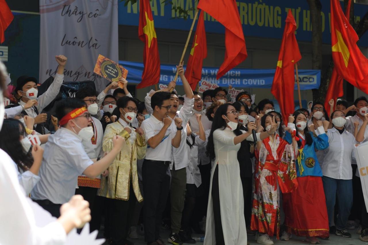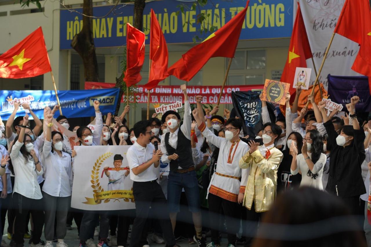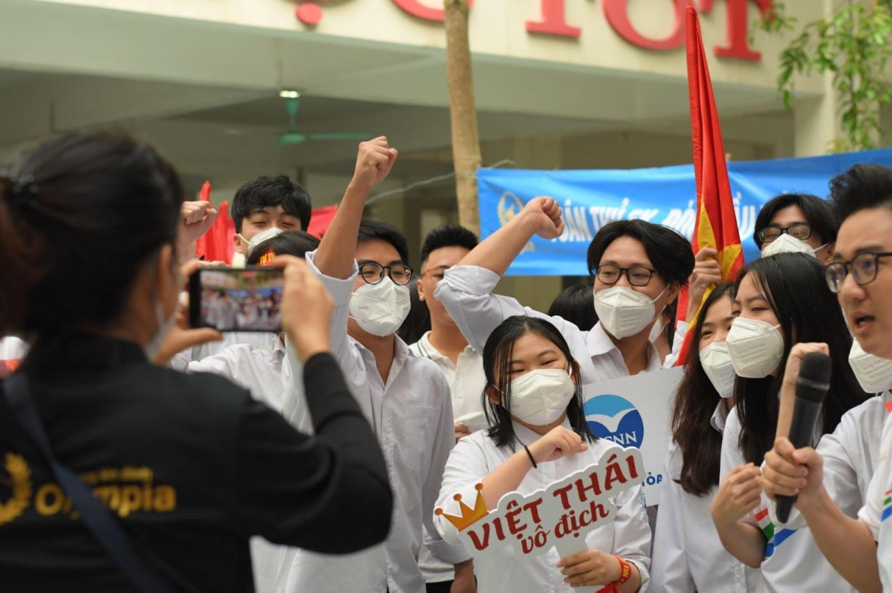 2. Chuyên Ngoại ngữ chẳng biết từ khi nào cũng đã cùng Việt Thái ôm “mộng Olympia”: mới sớm tinh mơ, băng rôn và những nụ cười đã bừng sáng rực rỡ khắp sân trường. Trong suốt chương trình, tiếng hò reo, tiếng nhạc rộn rã, cùng tiếng cheer “đặc sản” của thầy trò CNN vang lên không ngớt, khiến cho MC Sơn Lâm phải thốt lên: “Tôi năm nay hơn ba mươi tuổi, chưa bao giờ được thấy một không khí cổ vũ tuyệt vời như thế này!”.