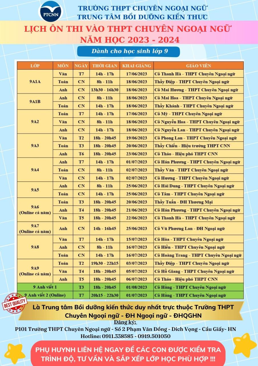 Trung tâm luyện thi chuyên ngoại ngữ vào THPT lớp 9 môn toán, văn, tiếng Anh chất lượng cao năm học 2023-2024